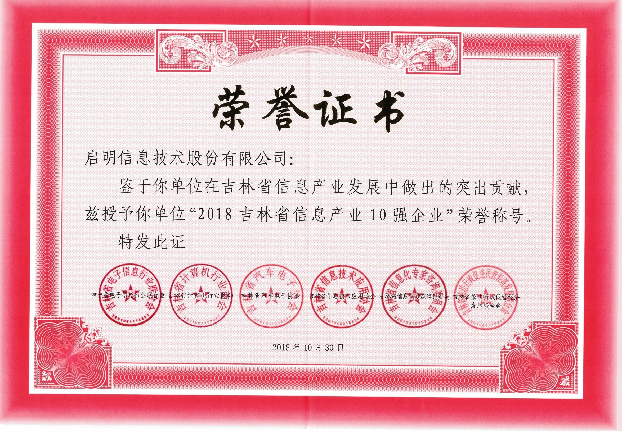 吉林省信息产业10强企业-2018