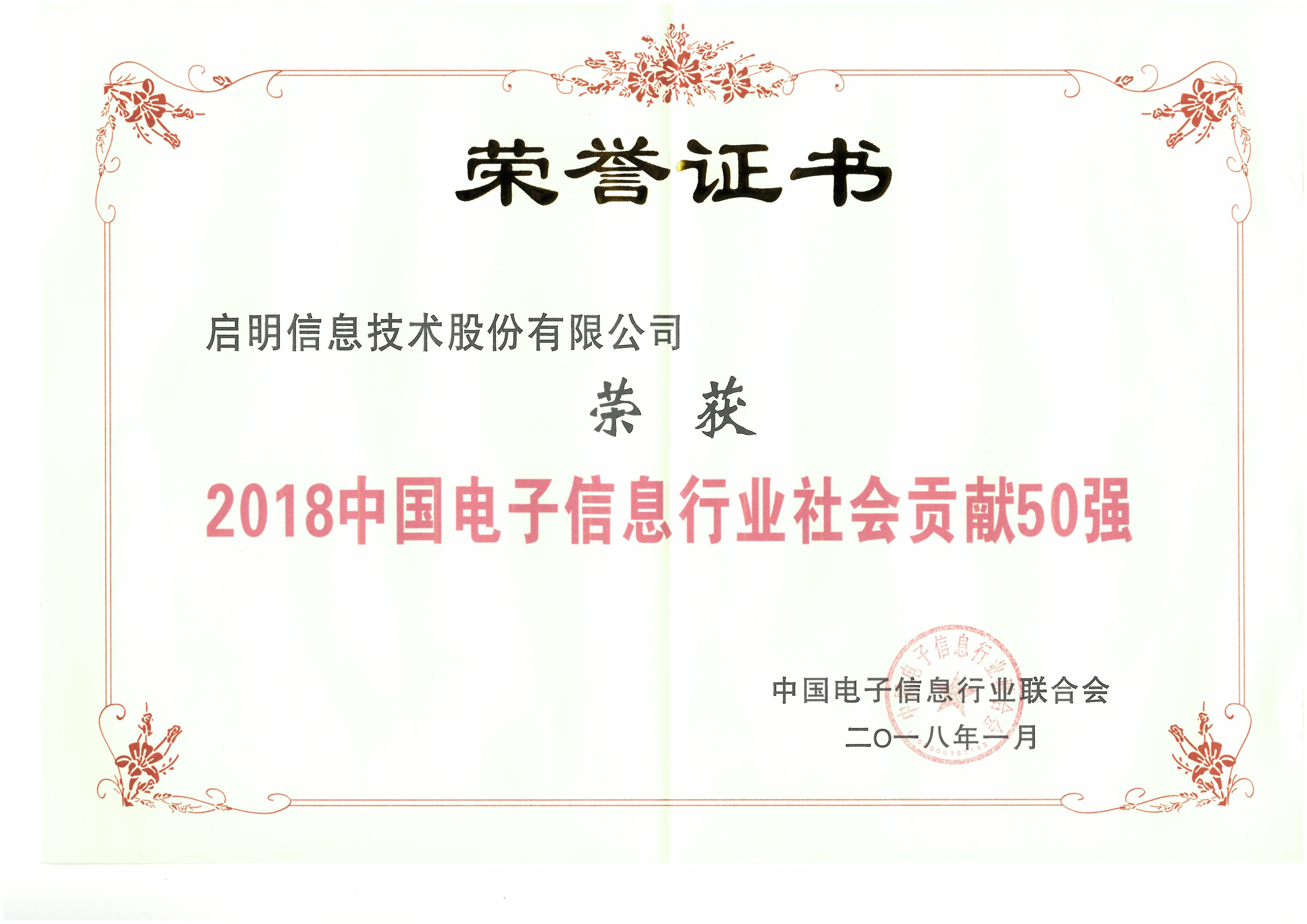 中国电子信息行业社会贡献50强-2018